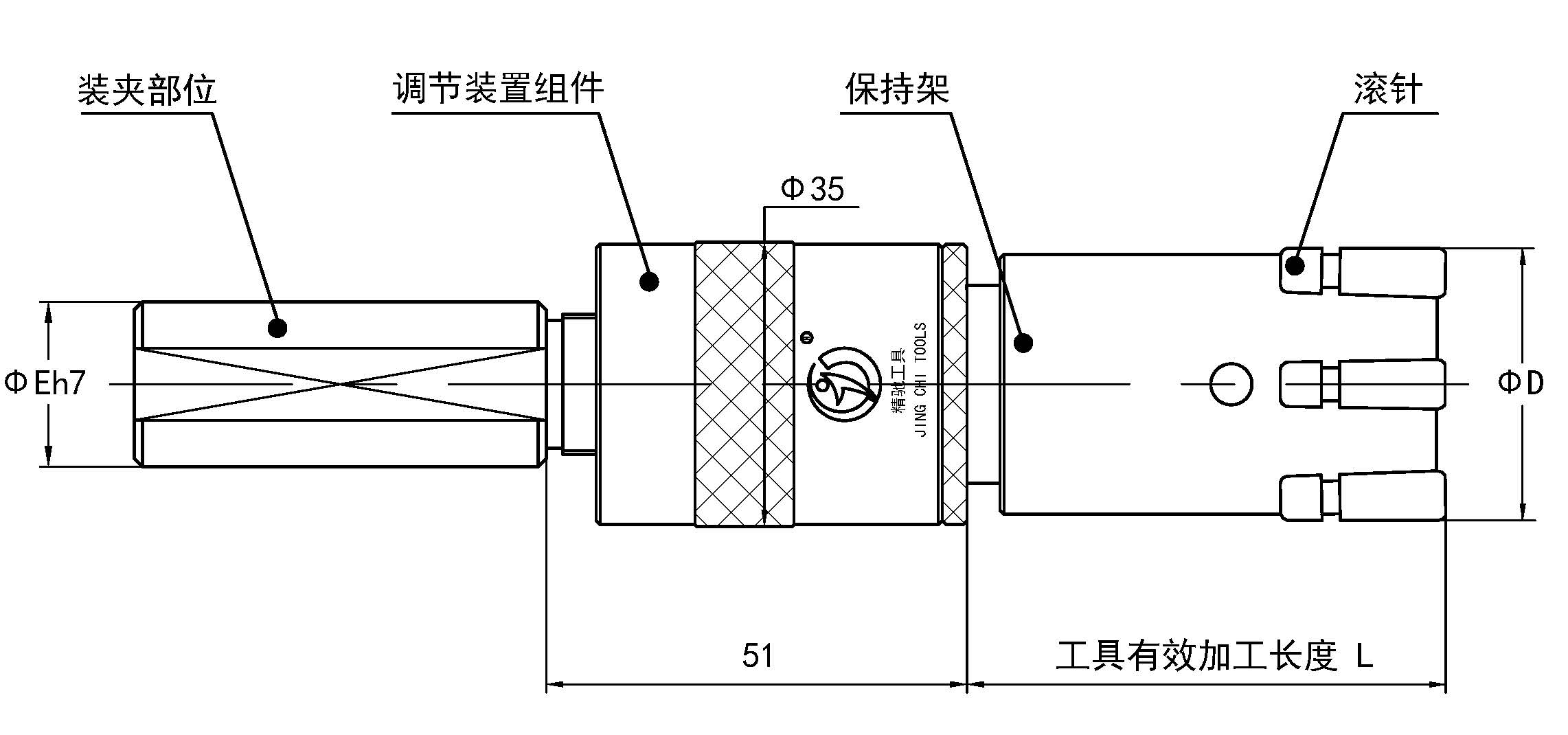 本工具可定制縮短刀具的長度,適合安裝在有行程限制的設(shè)備上使用,如數(shù)控車床上直接滾壓加工,減少加工工序。